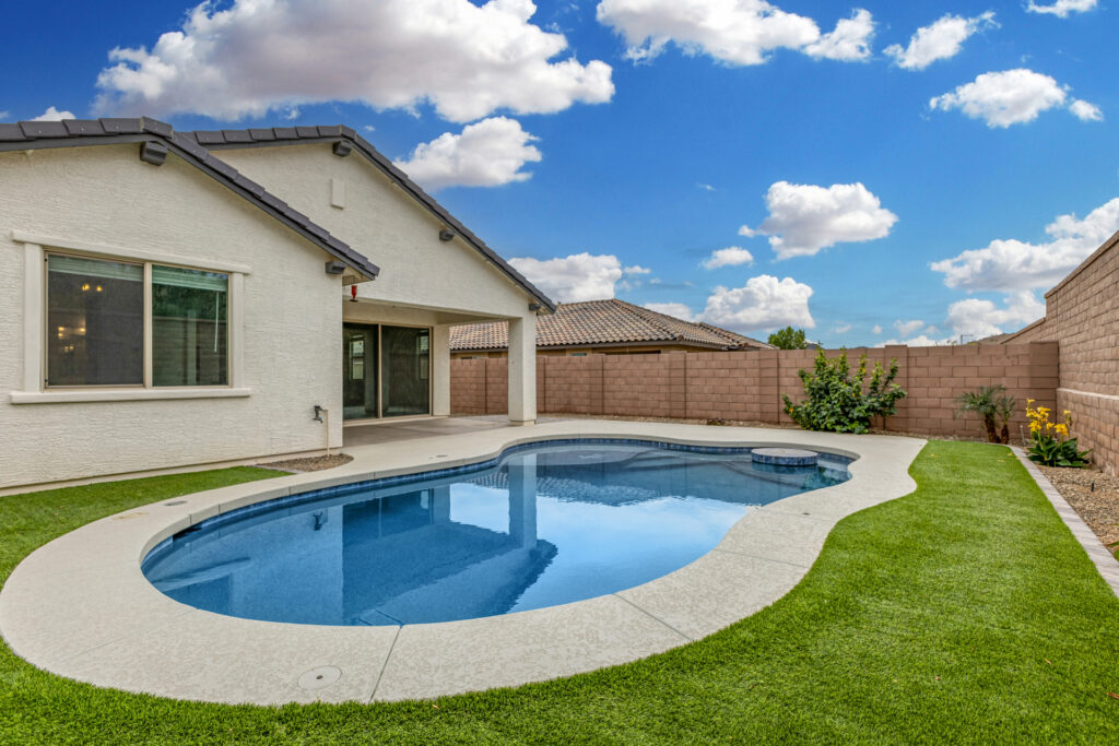 Desert beauty meets modern comfort. Just steps from scenic trails and surrounded by stunning mountain views. This thoughtfully designed home features an open layout with wood-look flooring, abundant light, and a chef’s kitchen showcasing rich cabinetry, stainless steel appliances, a walk-in pantry, and gorgeous honed granite countertops centered around a large island. The living space flows to a backyard oasis with a sparkling pool, turf, and covered patio—perfect for relaxing or entertaining. Located in a sought-after community with parks and amenities, this home offers the ideal blend of style, convenience, and Arizona outdoor living.